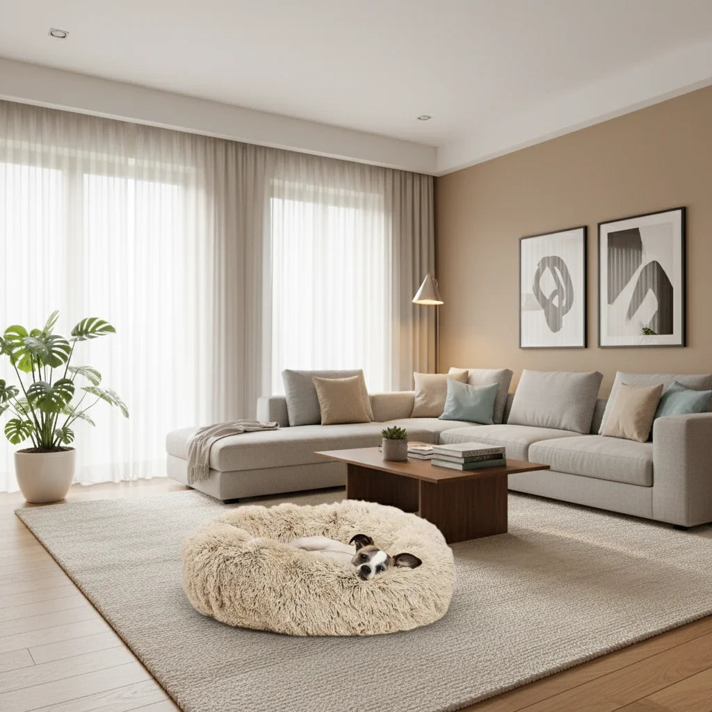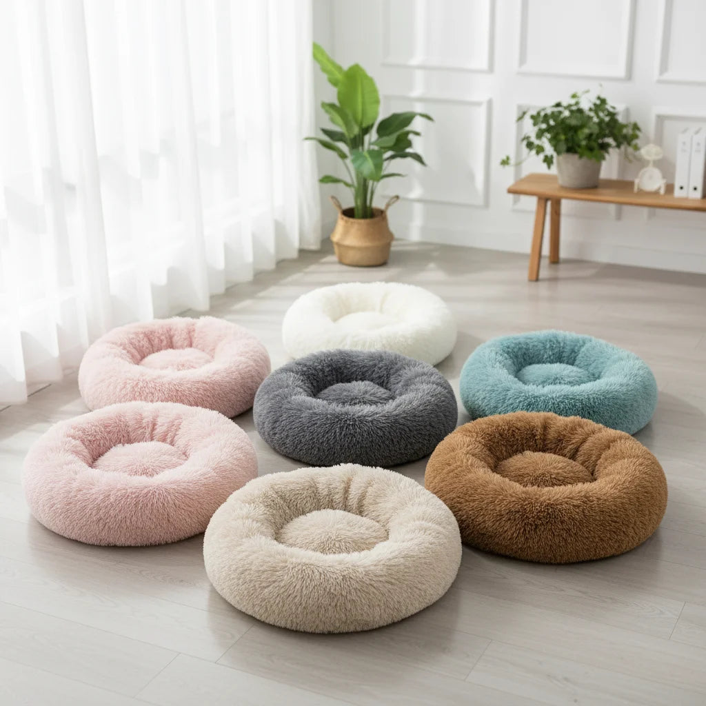 Our Cozy Plush Pet Bed comes in a beautiful array of colors like beige, pink, gray, and blue, ensuring a perfect match for any home decor. Beyond just comfort, it's a stylish addition that complements your living space while pampering your pet.