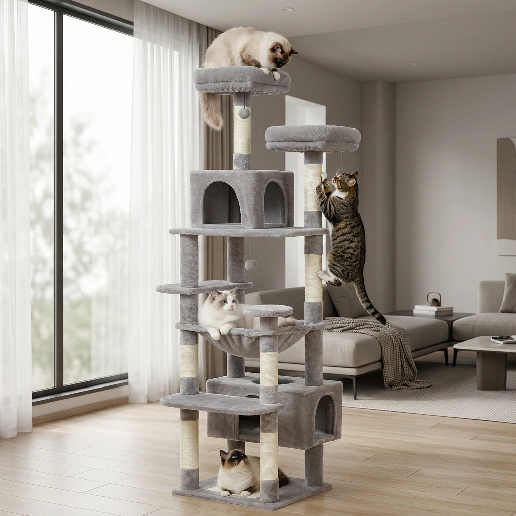 Unleash ultimate joy for your feline friends with our Ultimate Cat Tower, crafted for endless adventures and serene relaxation. We're here to ensure every purr-fect detail is clear!