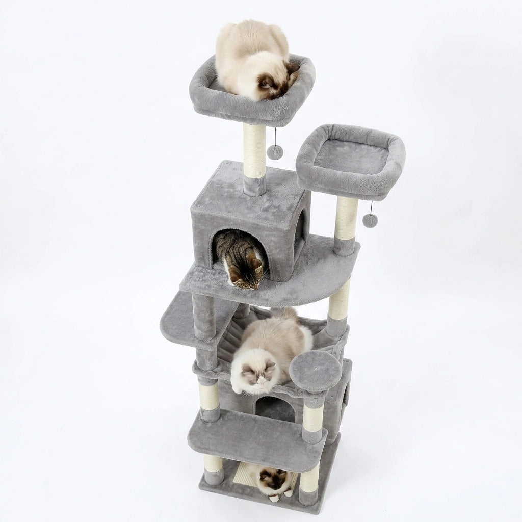 Definitely! Our multi-level design offers endless exploration. With multiple sisal scratching posts, cozy condos, a spacious hammock, padded perches, and playful hanging toys, your cats will discover new adventures daily and stay engaged for hours!